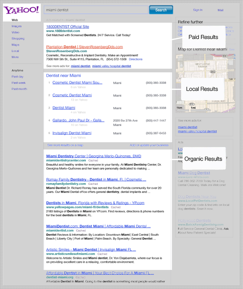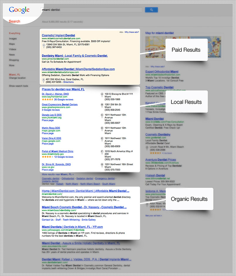 for a local business such as "Miami Dentist" will see the local results very